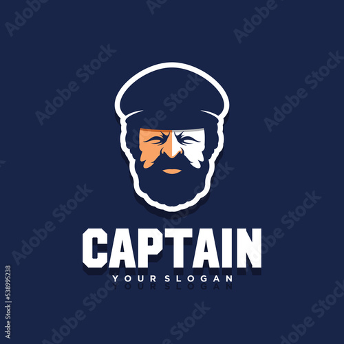 Bearded ship captain or skipper with crest hat for nautical logo design for sailors
