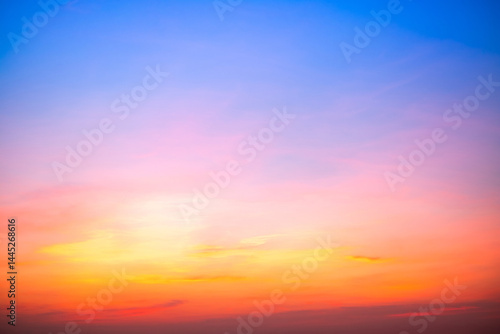 Beautiful , luxury soft gradient orange gold clouds and sunlight on the blue sky perfect for the background, take in evening,Twilight, Large size, high definition landscape photo