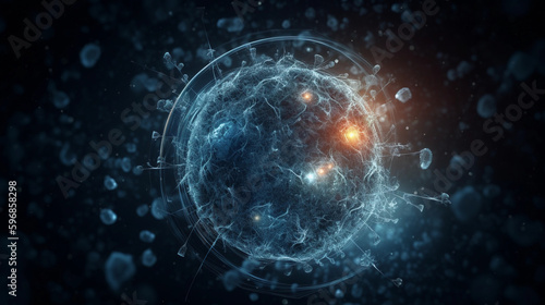 Beautiful 3d rendering of stem cell microscope. perfect background for your computer or laptop. Perfect template for you powerpoint deck (Generated with AI)