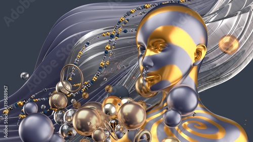 Beautiful abstract background with primitives and geometry. 3d illustration, 3d rendering.