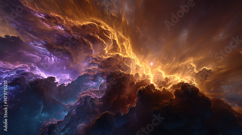 Beautiful abstract nebula cloudscape with vibrant colors and dramatic lighting effects