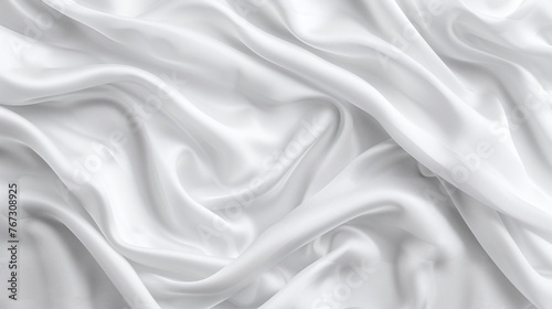 beautiful abstract white satin and silk fabric background with luxurious wavy folds and smooth creased texture in ivory, showcasing the elegance and opulence of high-end materials