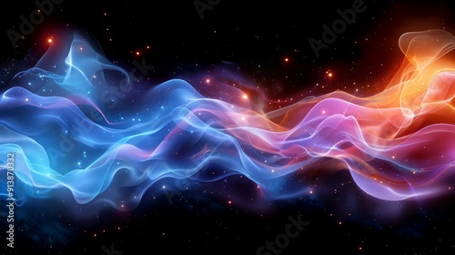 beautiful and colorful waves, smoke, fog, flow on dark background, rainbow colors