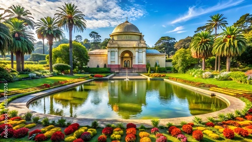 Beautiful architectural building with a domed roof surrounded by a tranquil garden setting