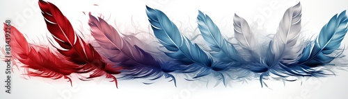 Beautiful arrangement of colorful feathers transitioning from red to blue, perfect for backgrounds or artistic projects.