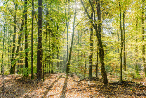 Beautiful autumn light in a mountain forest.