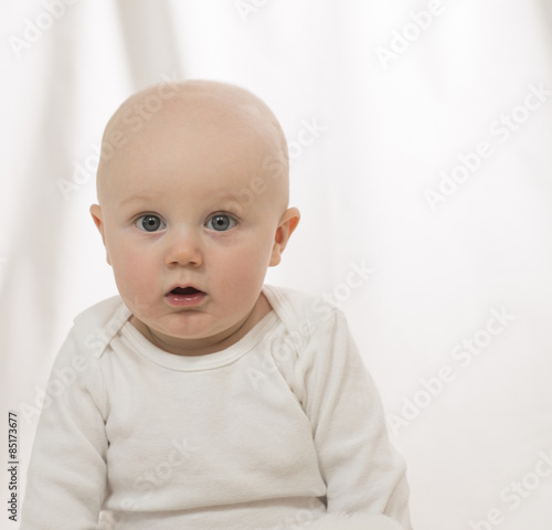 Beautiful Baby Boy with White Background & Blanket in Studio