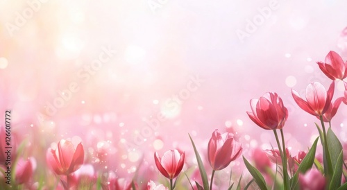 beautiful background of pink tulips, with a blurred bokeh effect and a dreamy atmosphere.