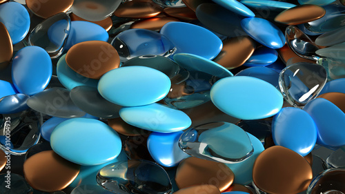 Beautiful background with beads, particles and simulation. 3d illustration, 3d rendering.
