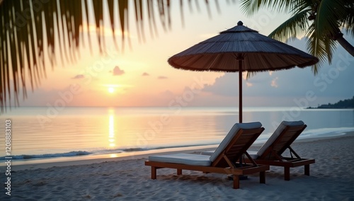 Beautiful Beach with Palm Trees for Tourism, Wellness, Holidays, and Travel
