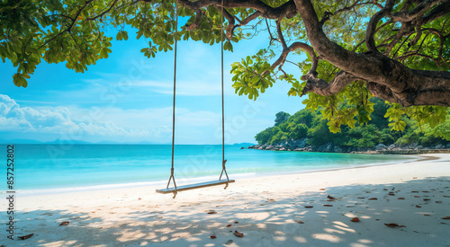 Beautiful Beach with White Sand and a Swing on a Tropical Island