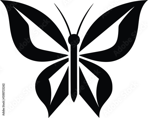 "Beautiful Black Silhouette Butterfly with Graceful Lines and Flowing Wing Patterns"