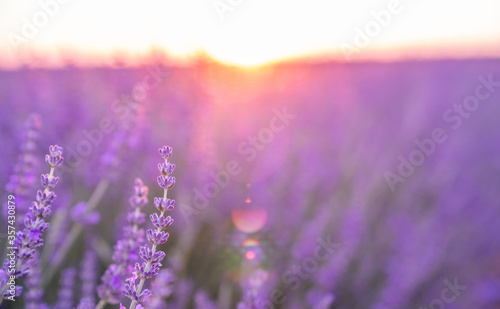 Beautiful blossoming lavender closeup background in soft violet color with selective focus, copy space for your text. Valensole lavender fields, Provence, France