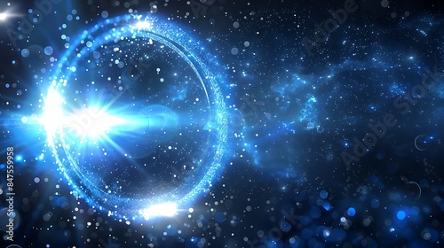 Beautiful Blue Circle Light with Lens Flare on Particles Background