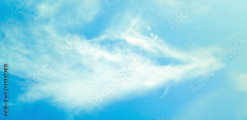 Beautiful blue sky and white clouds of various shapes with sunlight. Nature background