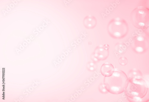 Beautiful blurry clear pink soap bubbles float background with copy space.