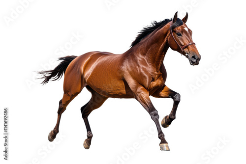 Beautiful brown horse running forward isolated on transparent background