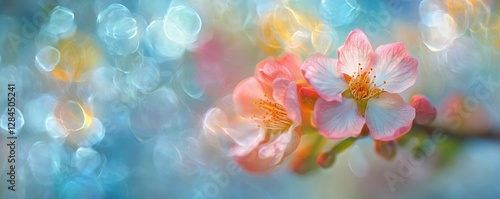 Beautiful cherry blossoms with vibrant bokeh in soft spring colors