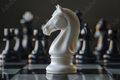 Beautiful chess piece standing on checkered game board during strategic game of chess