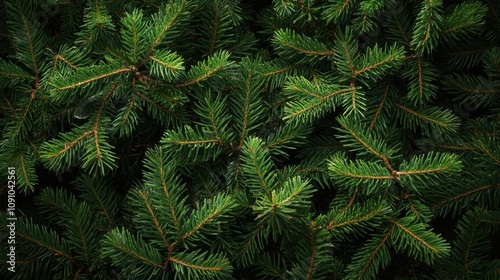 Beautiful christmas background with close-up of green fir tree branches Creating a moody and festive design for seasonal quotes and winter holiday concepts