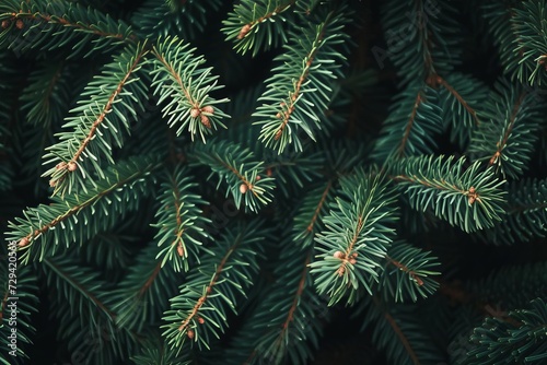 Beautiful christmas background with close-up of green fir tree branches Creating a moody and festive design for seasonal quotes and winter holiday concepts