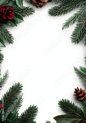 Beautiful Christmas frame adorned with festive illustrations and natural elements