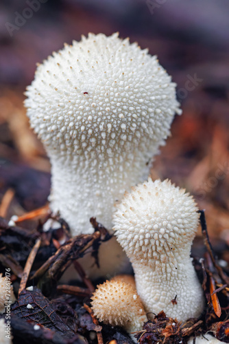 Beautiful close-up macro photo from a fungus, Lycoperdon perlatum, popularly known as the common puffball
