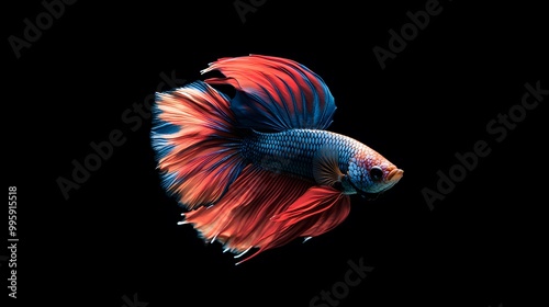 Beautiful, colorful betta fish on a black background, with dynamic movement