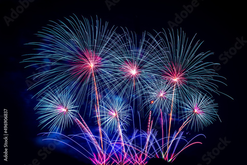 beautiful colorful firework display set for celebration happy new year and merry christmas and fireworks on black background