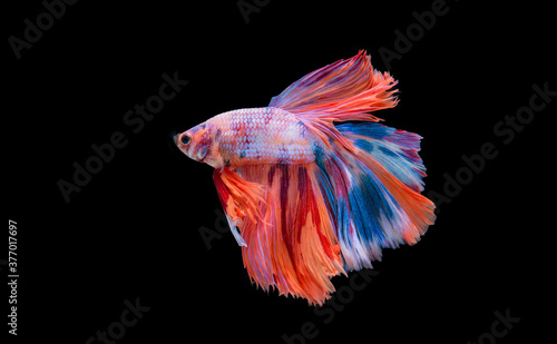 Beautiful colors"Halfmoon Betta" capture the moving moment beautiful of siam betta fish in thailand on black background