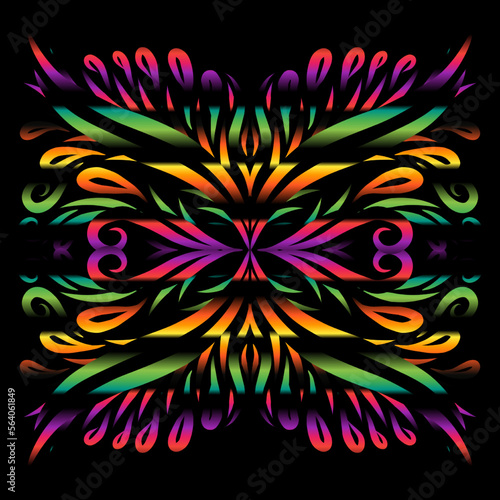 Beautiful colourful gradient line art of indonesian traditional abstract batik dayak ornament for design template elements background