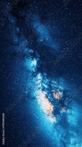 Beautiful Cosmic Nebula View, Stars in Deep Blue Space. Gorgeous Galaxy Background, Universe Night Sky.