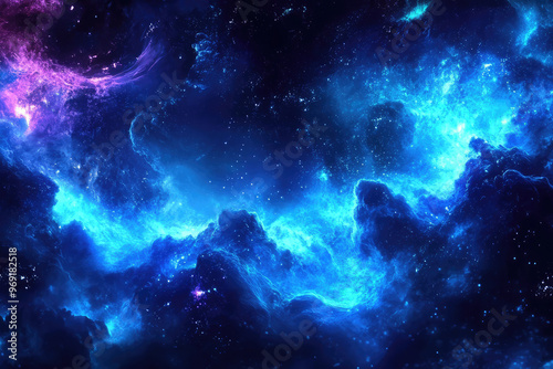 Beautiful cosmic scene depicting a vibrant blue nebula against a star-studded backdrop. It's an awe-inspiring visual that captures the beauty and vastness of space.