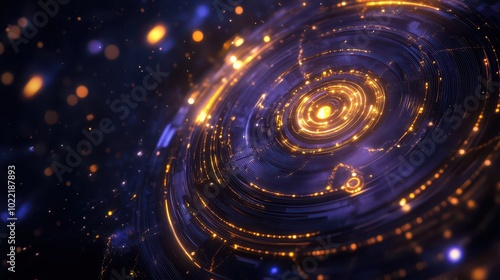 Beautiful cosmic swirl with vibrant colors and glowing lights in a dreamy space background.