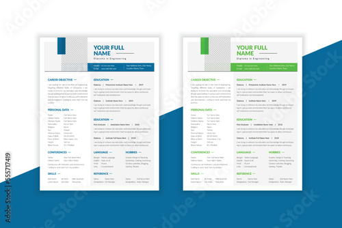 Beautiful CV / Resume template - elegant stylish design - dusty blue color background vector, Professional Resume Template Vector Design.