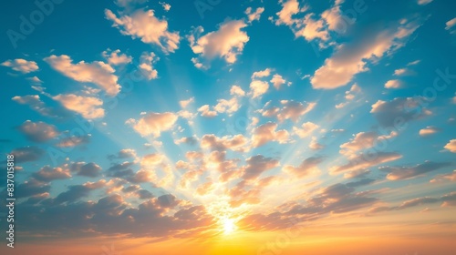 Beautiful early morning sky with soft clouds illuminated by the rising sun