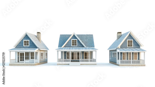 Beautiful Family Houses With Porches in American Style Generative AI