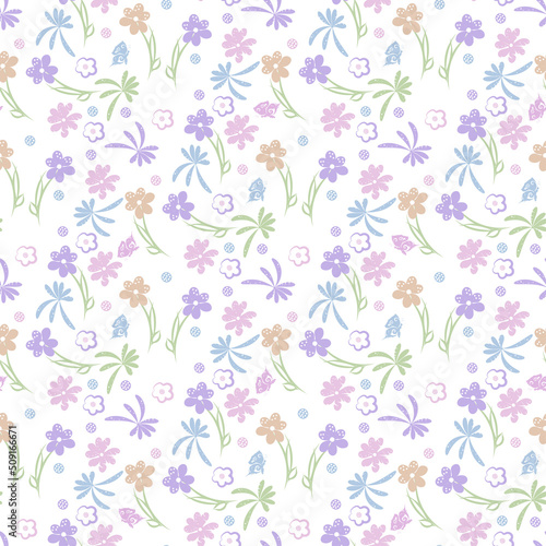 Beautiful floral pattern pastel colors. Many Small decorative flowers and curls on white background vector illustration for design cambric fabric, background of women's site, wallpaper, wrapping paper