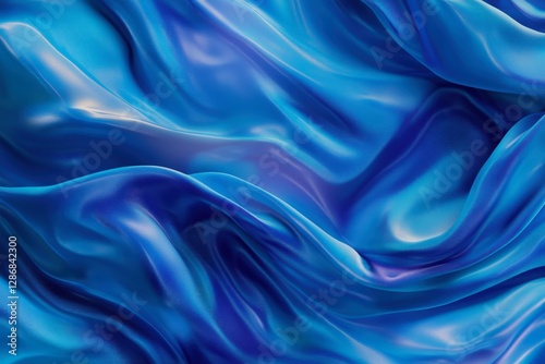 Beautiful flowing blue silk fabric with soft waves and elegant texture illuminated by gentle light