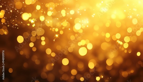 Beautiful golden bokeh background filled with sparkling lights, perfect for celebrations and festive themes.