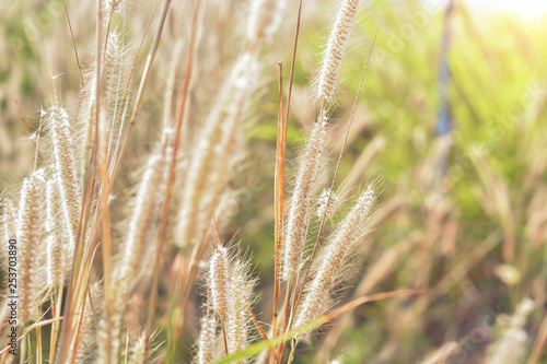 Beautiful grass flower with sunlight during summer time.