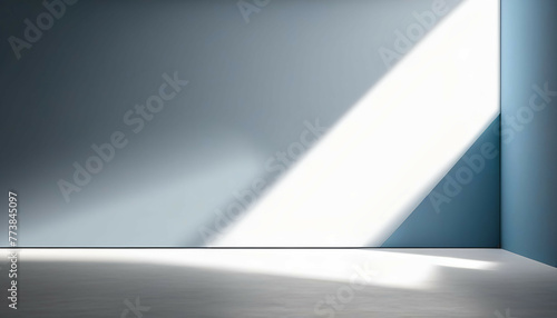 Beautiful gray-blue empty wall with lateral lighting and interesting chiaroscuro. Minimalistic background for product presentation.
