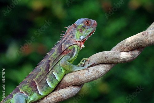 Beautiful Green Iguana (Iguana iguana) on tree branch.