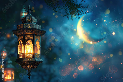 Beautiful greeting card with holiday composition for happy celebrate Ramadan, abstract vivid composition consists of fictional unreal fantastic vision on background