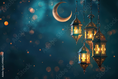 Beautiful greeting card with holiday composition for happy celebrate Ramadan, abstract vivid composition consists of fictional unreal fantastic vision on background