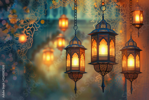Beautiful greeting card with holiday composition for happy celebrate Ramadan, abstract vivid composition consists of fictional unreal fantastic vision on background