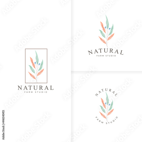Beautiful hand drawn botanical logo collection