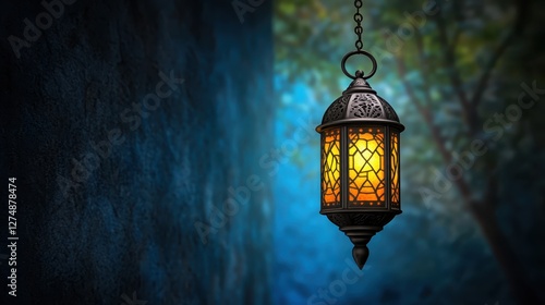 Beautiful Hanging Lantern With Warm Light Illuminating A Calm Outdoor Setting At Night