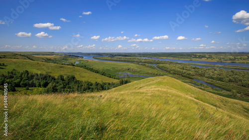 beautiful hills on the high bank of the river Vyatka on a sunny day in summer