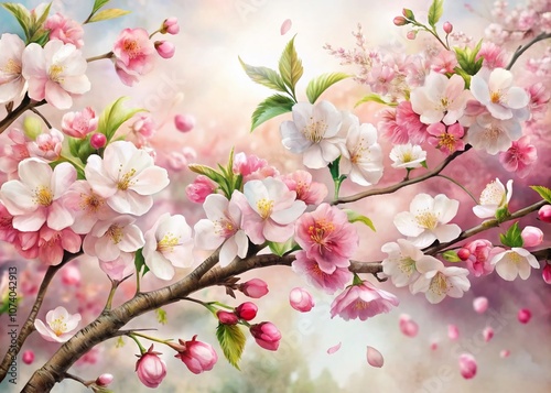 Beautiful Illustration of Isolated Cherry Blossom Trees in Fall, Showcasing Vibrant Colors Against a Clean White Background for Stunning Food Photography Inspiration